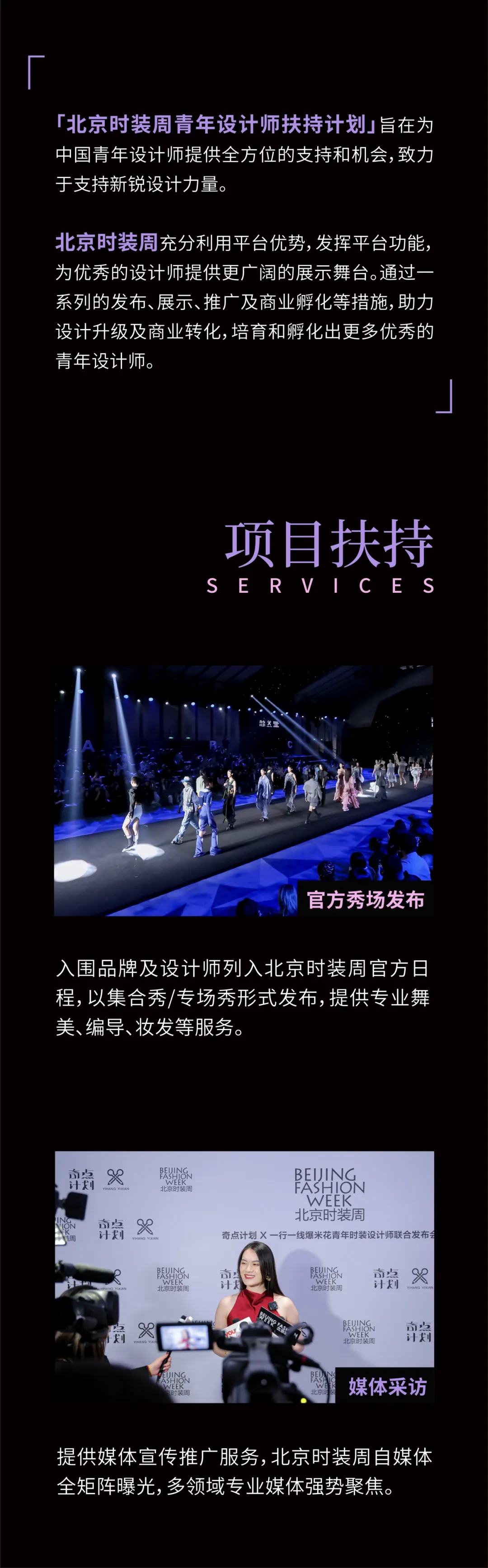 【北京时装周青年设计师扶持计划】旨在为中国青年设计师提供全方位的支持和机会,致力于支持新锐设计力量。