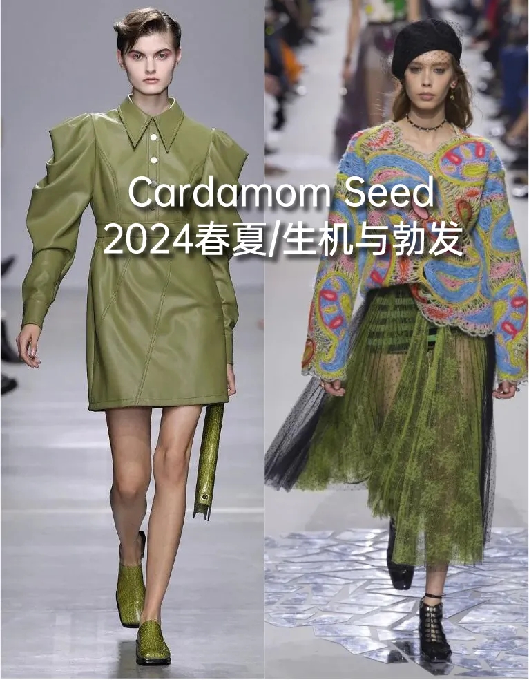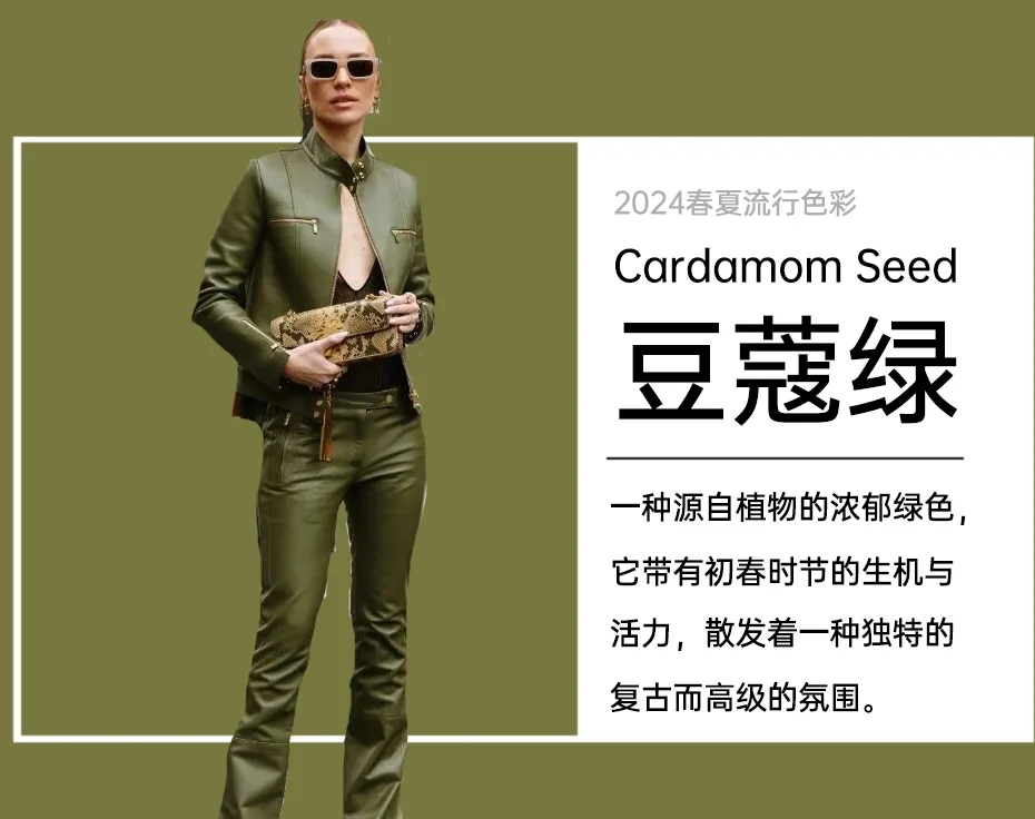 豆蔻绿成为了备受设计师青睐的2024春夏流行色,这种独特的色彩给人以清新舒适、生机勃勃的美感。